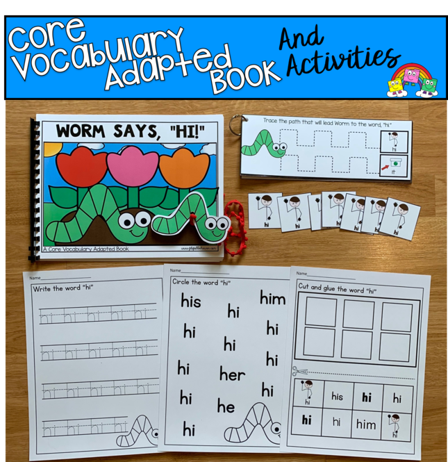 "Worm Says Hi" Core Vocabulary Adapted Book And Activities